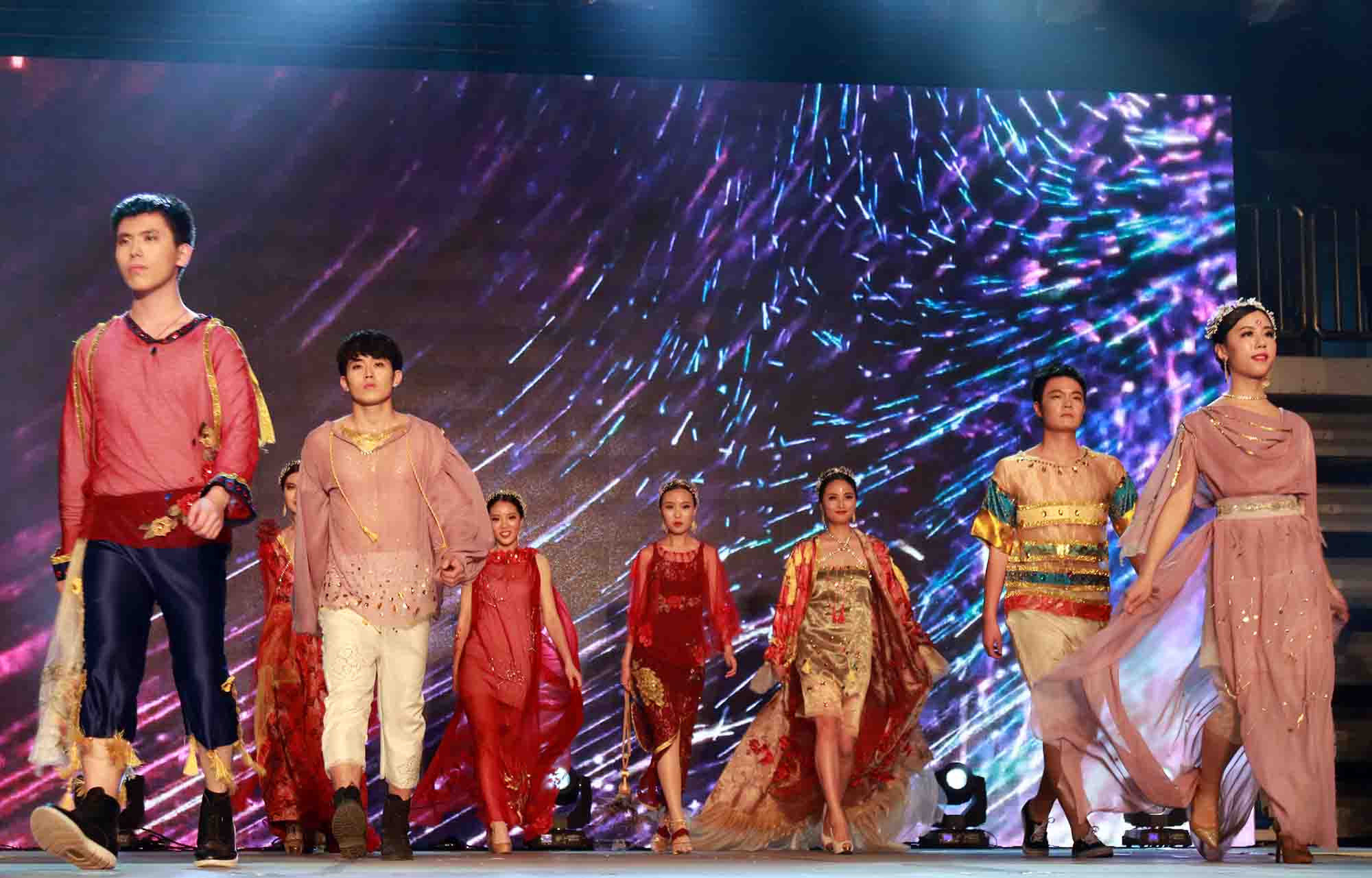 The Beijing Normal University “Unending Road” Costume Contest was held on April the 16th of 2016 in Qiu Jiduan Stadium. After over one month of hard work from the models and designers. This night, following the rhythm of evocative music, they stepped onto their own stage. The theme of this year’s costume is “Unending Road”, representing the Silk Road which would benefit over 100 generations. Jade, tea, spices and porcelain of the Han and Tang Dynasty have made its debut in the world through the Silk Road; also exhibiting ancient China’s culture and spirits along its way. This year’s theme has been divided into four sections, which are “Territory Exploration, Jades Widely Spreading through the Silk Road”, “Elegant, Delicate & Graceful, Serving Tea to Welcome Friends”, “Flourishing Age, Precious Aquilaria, a Song of Fragrance” and “Marine Journeys, Colorful Porcelain”. BNU Business School was the first to perform in the third stage, the keyword of which is “Fragrance”.