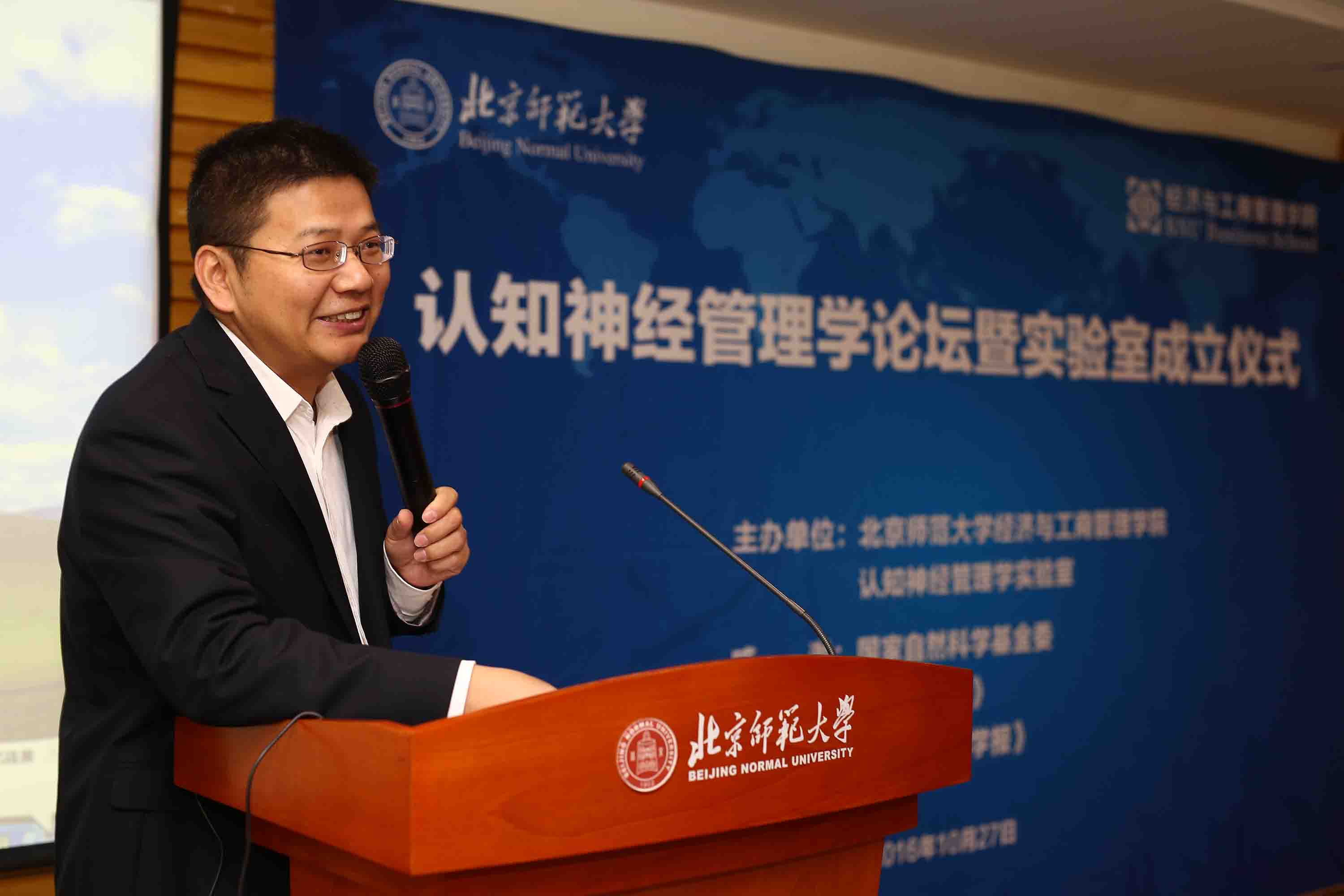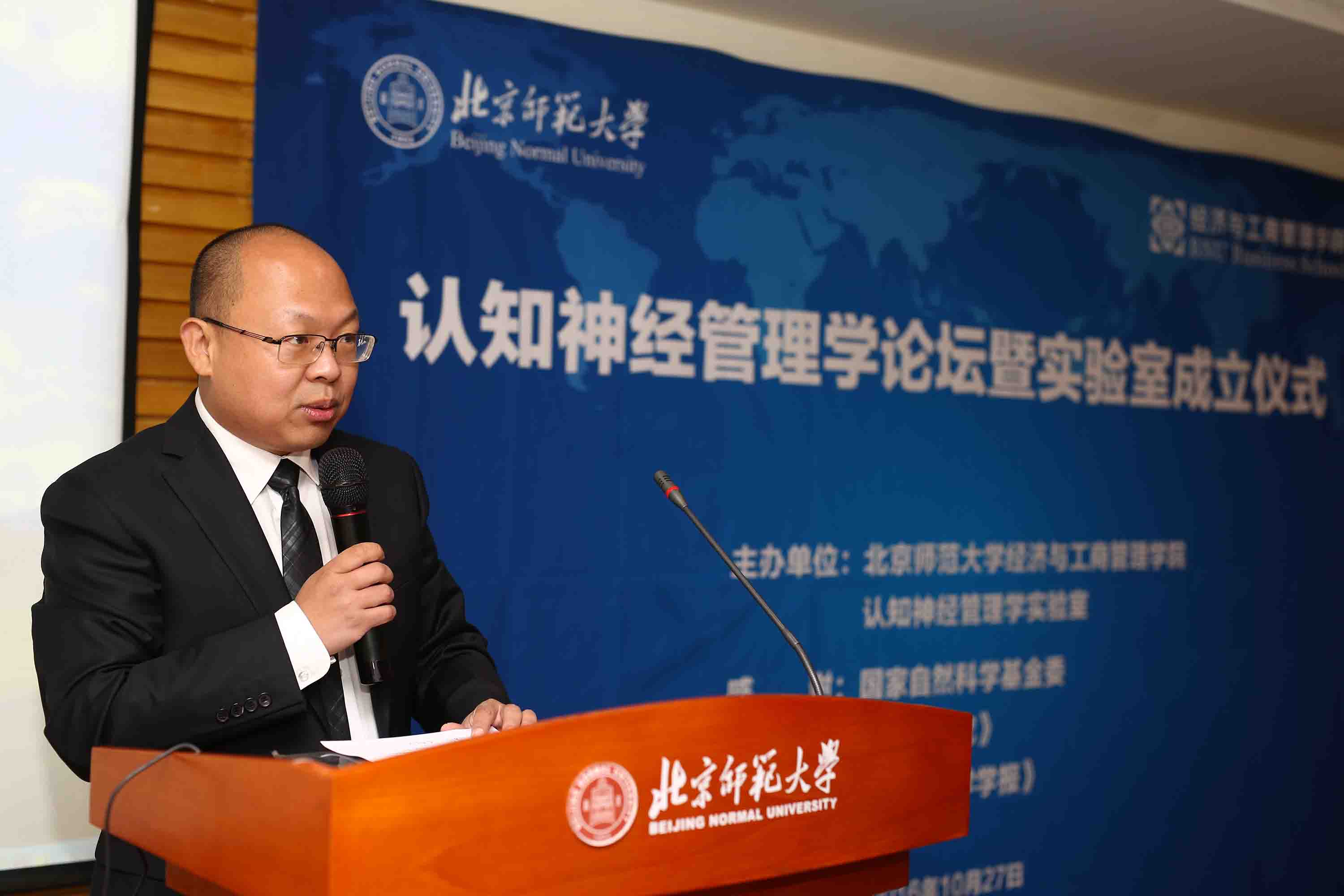 In the morning of October 20, 2016, the Cognitive Neuroscience Forum of BNU Business School and Laboratory Establishment Ceremony were successfully held in the Jingshi Building. Professor Ma Qingguo, Director of the Neuroscience Management Laboratory of Zhejiang University and Research Founder of the International Neuroscience Research Program, Meng Qingfeng, Director of the Policy Bureau of National Natural Science Foundation, Fu Guoqun, Director of the Marketing Research Society of Chinese Universities, Editor in Chief of “Journal of Marketing Science” and Professor of Peking University, Professor Liu Guoqiang, Director of the Editorial Department of “Accounting Research”, Professor Xue Gui, Director of the Brain and Learning Science Research Center of BNU, Professor Liu Chao, a researcher of State Key Laboratory of Cognitive Neuroscience and Learning at Beijing Normal University, Professor Zhang Pingdan, Vice Dean of BNUBS, Professor Cui Xuegang, Director of Cognitive Management Laboratory and associate professor Su Song, Vice Director of Cognitive Management Laboratory and director of Marketing Department attended the forum and the laboratory establishment ceremony. The forum also attracted more than 100 teachers, doctors and masters from Nanjing University of Posts and Telecommunications, Research Group on Military Decision - making of the Ministry of Aerospace, Beijing Institute of Beijing Water Conservancy and Design Institute, BNUBS, School of Psychology of BNU and School of Brain and Cognition of BNU.