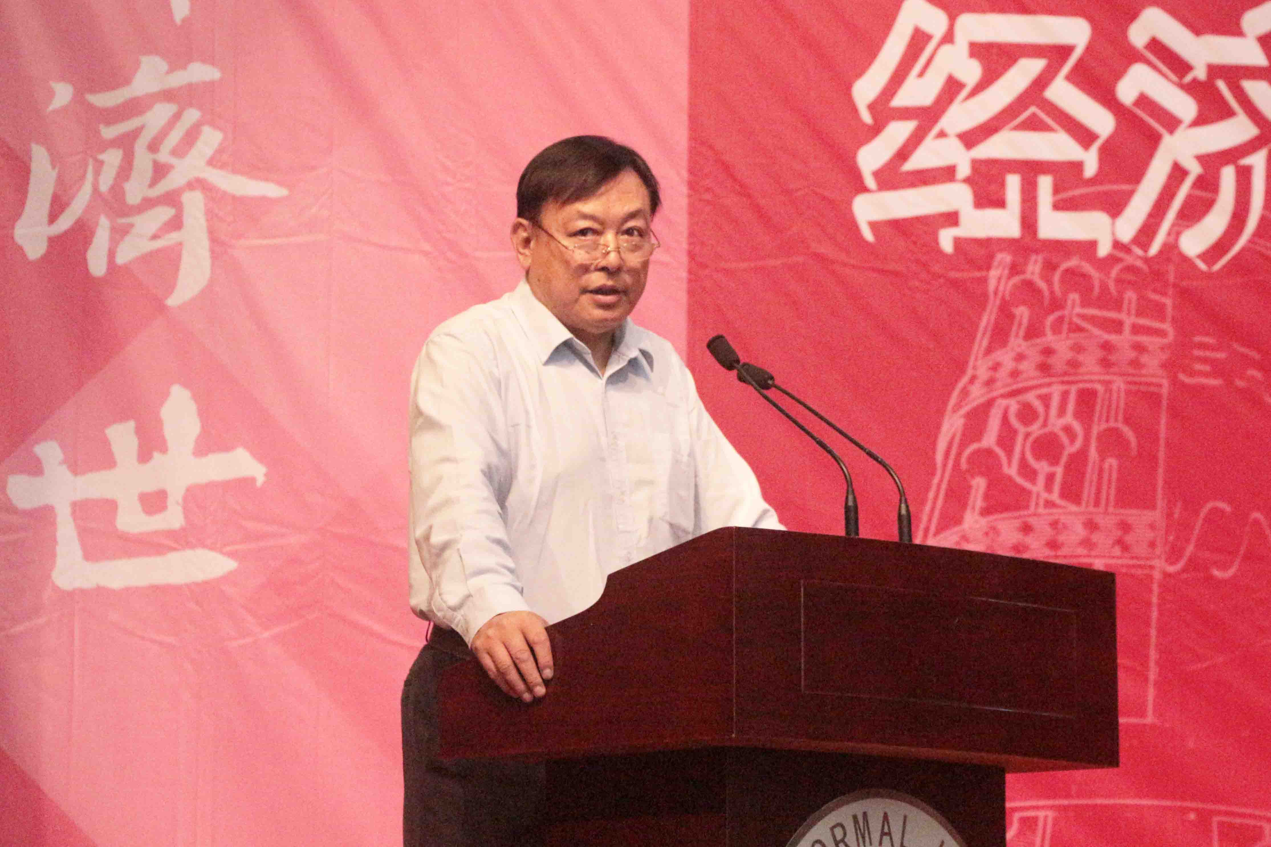Dean of BNUBS Mr. Lai Desheng first delivered remarks. He started from introducing the history of BNUBS, and explained the value and mission of BNUBS. Then, teacher representative Mr. Shen Yue, professor in economics gave a talk. Mr. Shen was the first year of students admitted by BNU after the restoration of college entrance exam. He quoted a line from Ean-Jacques Rousseau, “man was born free, and he is everywhere in chains”, to explain his understanding of freedom, and expressed that he wishes all the new students to grow up in this world full of freedom.