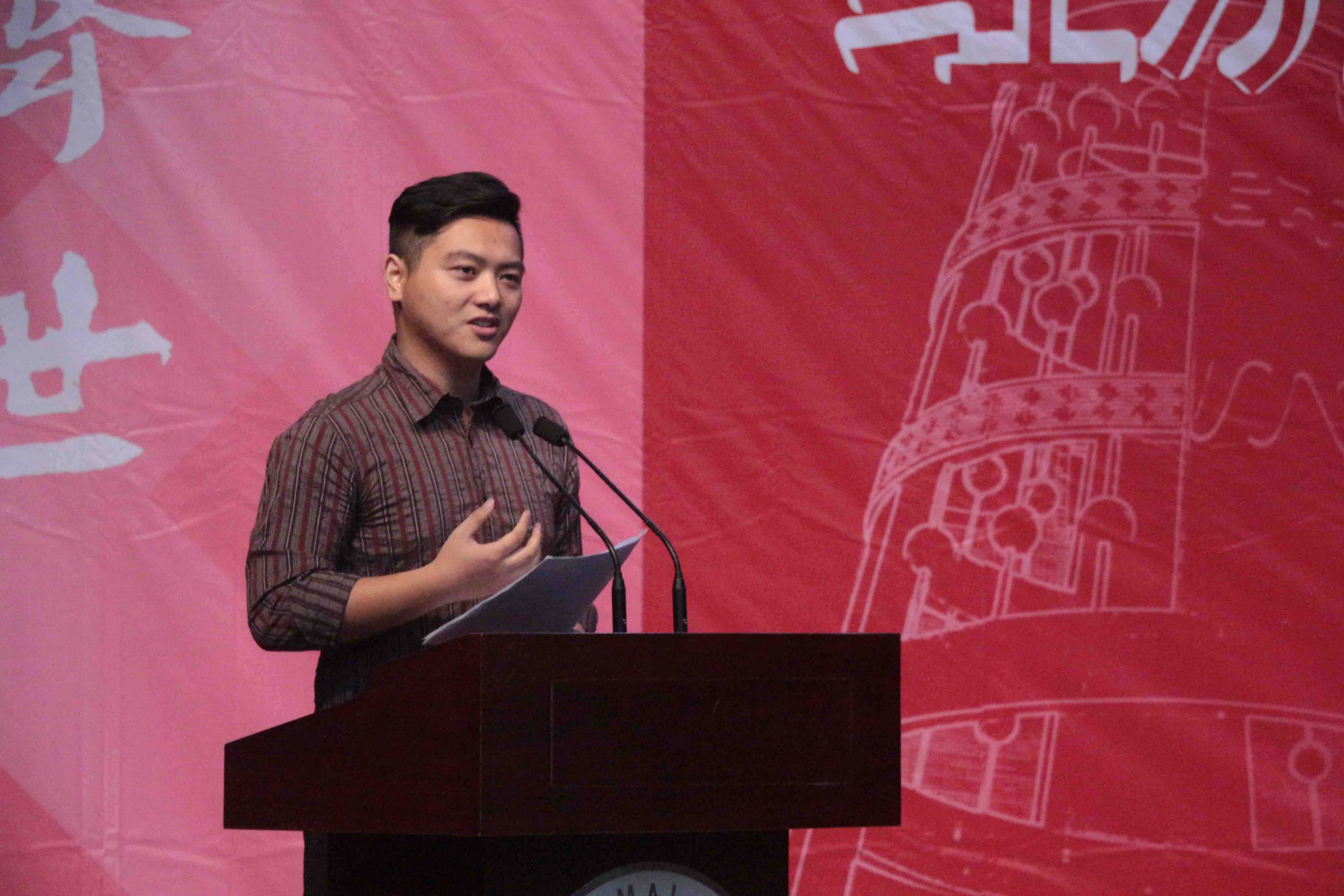 Following Mr. Shen’s talk, student representative Yao Yue gave a speech, in which she reflected on her past university time, and reminded new students to value their precious times, join university activities and pay attention to all-around development. Postgraduate student Wang Bin is an excellent student with rich research achievements. He shared his result and experience, hoping to encourage new students to find their areas of research.