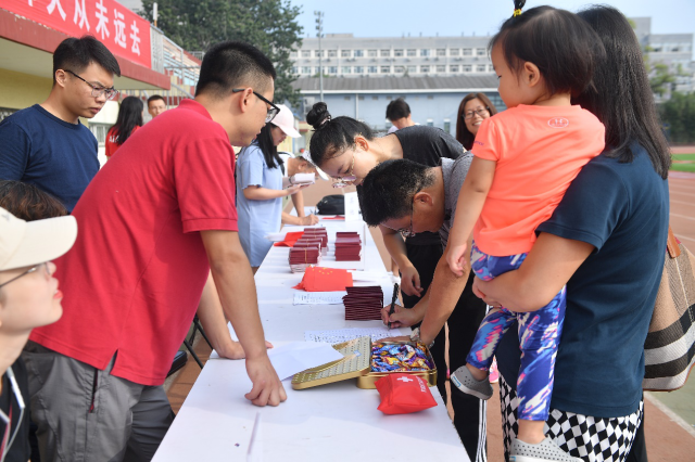 On September 8th, "Look back at Youth with Family" Parent-child Fun Games, was held in Qiujiduan Stadium. Before the Games started, the parents and children completed the warm-up dance “Grass Dace”. The Games were various, including “big foot carry the small”, “two people three feet” and “ball transport”. After that, parents and children painted on the canvas. All the games were experience-oriented. It made the parents and children more intimated through these activities collaborated by them, which have enhanced the children’s collaborative ability at the same time.