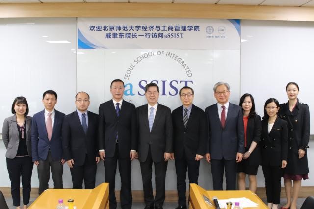 BNUBS has a friendly cooperative relationship with aSSIST. In October 2019, Dean Qi Yudong led a delegation visited aSSIST and held talks with President Tae Hyun Kim, Vice Chancellor Yong Joo Choi, Chair Professor Hwy-Chang Moon, Academic Dean Bo-Yong Kim and others on the topics like faculty visits and PhD cooperation programs, and signed MOU. In November 2019, Chair Professor Hwy-Chang Moon and Yin Wen Yan from aSSIST visited BNUBS and gave lectures to faculty and students.