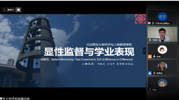 Parallel session was held at Tencent Meeting on July 5th. Served as the judges of the parallel session, Assistant Professor Xu Minbo from Department of Economics, Assistant Professor Hu Conghui from Department of Finance, Yu Jiajie from Department of International Economy and Trade, Assistant Professor Li Jiangyu from Department of Marketing and Professor Shen Chang’e from Department of Accounting questioned and commented on the 23 groups for their report. Finally, 6 papers stood out among the candidates and entered the main forum to compete for the title.