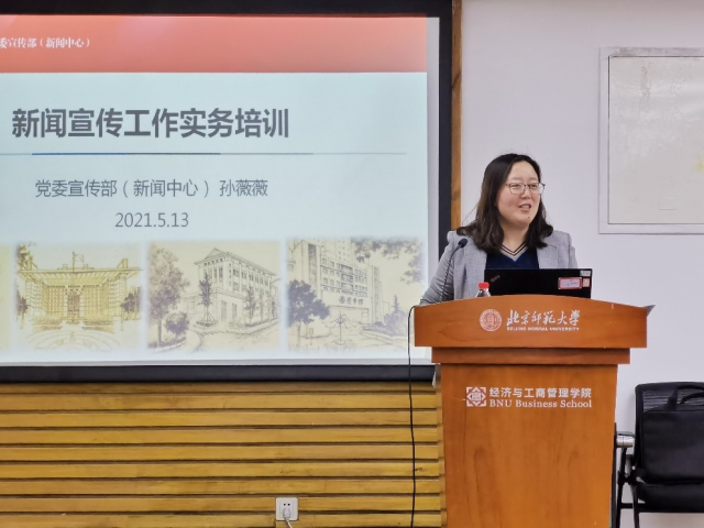 Press publicity is a key work in the construction and development of the school, which plays an important role in publicity and guidance, image display and cohesion gathering. In order to help all the administrative teachers to form a systematic cognition of the attributes, functions and communication of the news media to improve the ability and skills of publicity work, on the afternoon of May 13th, the school held a practical training lecture on publicity work in the conference room 9406 of JINGSHI HOTEL. Sun Weiwei, Associate Director of the Party Committee Propaganda Department and News Center, gave the lecture. Based on her own experience in the school's external publicity and the construction and operation of the network new media platform, Ms. Sun first introduced the orientation and task of the university's propaganda work and the main news platforms of the school. Subsequently, she focused on the standard of news release writing and the matters for attention in proofreading, introduced the choosing of annual key topics, encouraged teachers to contribute articles actively and work together to do a good job in news publicity.