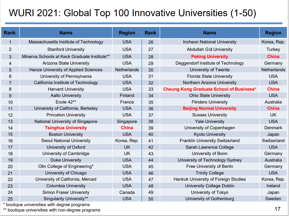 Figure 4: Global top 50 rankings in 2021 WURI in “Student Exchange and Openness”