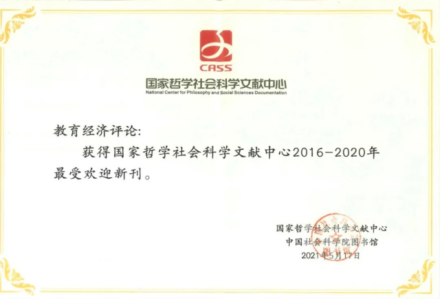 In May 2021, China Economics Of Education Review was selected into the CSSCI Extended edition of source journal Catalog, and is now recognized and encouraged by the National Center for Philosophy and Social Sciences Documentation. Here, we want to pay special thanks to the experts, scholars and the vast number of authors and readers who have been caring and supporting our publication since its inception! We will always adhere to the correct direction and value orientation, adhere to the principle of quality first, live up to the expectations of the public, and make it better and better!