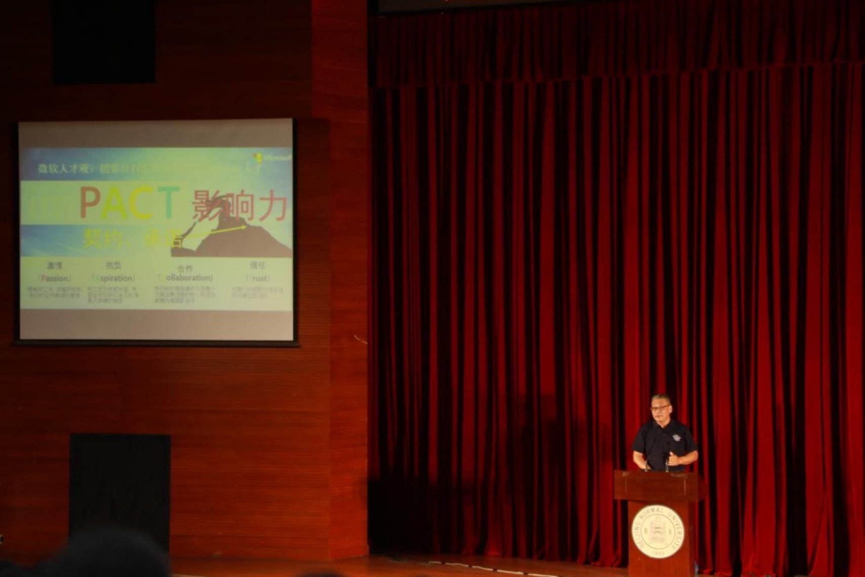 Special Guest Liu Fengyu, Director of Human Resource Services in Greater China, Microsoft (China) Co., LTD,shared the need for talent in the digital age in his speech titled "Seven Growth Mindsets from Ordinary to Great.” He pointed out that innovation needs cooperation, the new generation needs empowerment. And the pursuit of excellence meant the students must constantly break through themselves, change from knowing everything to learning everything, and take learning as a lifelong career.