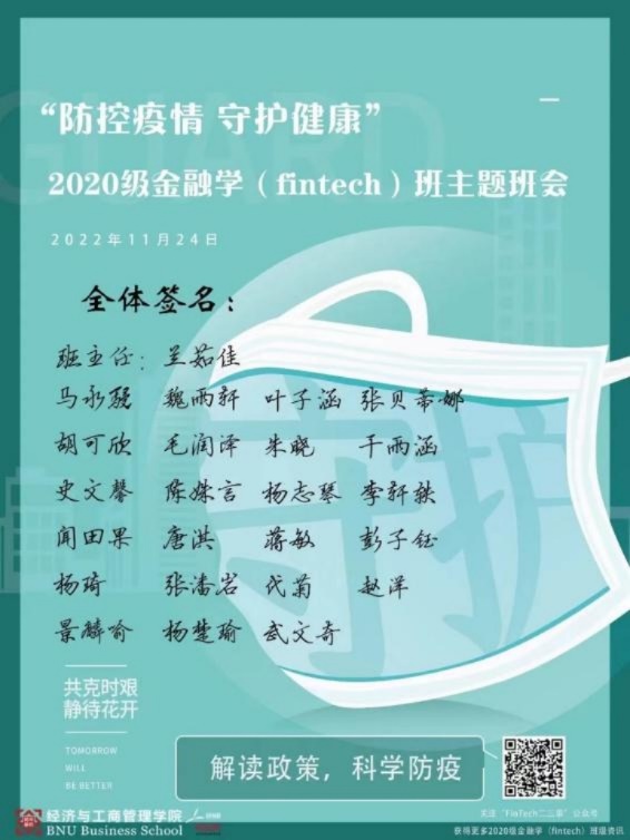 In order to implement the decisions and arrangements of the CPC Central Committee and higher level units on epidemic prevention and control, guide students to scientifically understand and deal with the epidemic, maintain a positive, healthy and stable attitude, rationally arrange their study and life, and enhance the cohesion and centripetal force of the class and School, from November 22nd to November 27th, all the undergraduate, postgraduate and doctoral classes of BNUBS used the online platform to hold class meetings on epidemic prevention and control, report the epidemic situation, convey school policies, respond to students' demands, learn advanced deeds, carry out warning education, call on student party members and student cadres to play a pioneering and exemplary role at critical moments, and lead students to be the first person in charge of their own health, and jointly shoulder the responsibility and obligation of epidemic prevention and control on campus.