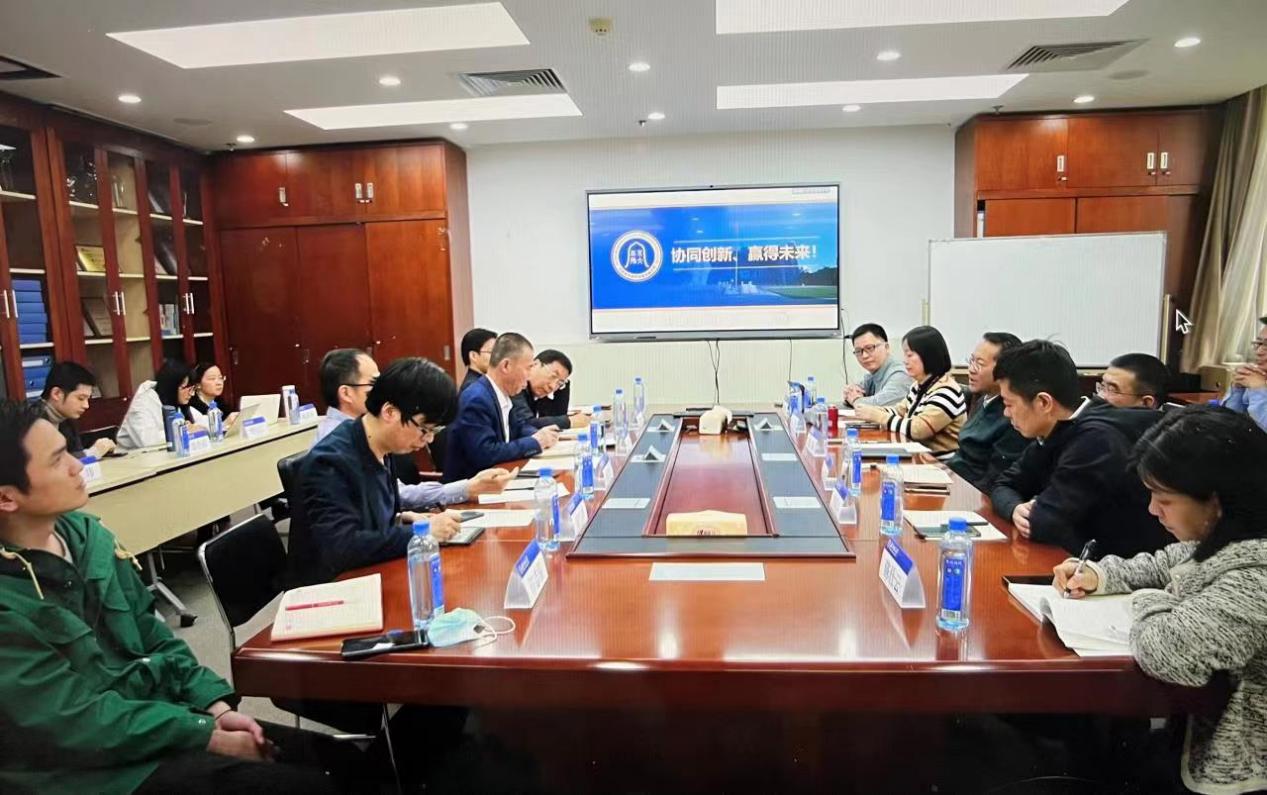 Lin Zeyong, Director of the comprehensive Management Department of Asset Management Company, Chen Shiyun, Director of the Economic Management Department of Publishing Group, Zhou Su, President of the Higher Education Bureau, Sun Xin, Director of the comprehensive Management Department of Science and Technology Group, Yu Bo, Director of the Strategic Planning and Investment Department, Sun Xin, Director of the Cultural and Creative Department, Xu Hongyan, Associate Director of the transfer and transformation Department of Scientific and Technological Achievements, and Wang Wei, Director of the School Office attended the discussion.