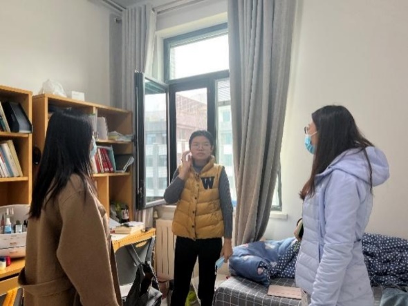 Han Lili, Associate secretary of the Party Committee of BNUBS, and instructors also visited the dormitories of doctoral students in Changping Campus. The teachers gave patient and constructive suggestions on life, study, health and social issues of concern to everyone, and conducted inspection and guidance on the construction of dormitory culture. In the communication with students, Teacher Han pointed out that cultivating good living habits and creating a comfortable dormitory atmosphere is an indispensable part of daily life. They also hoped that students could contact counselors and homeroom teachers at any time if any problems should occur. BNUBS would waste no time in assisting students to solve practical problems.