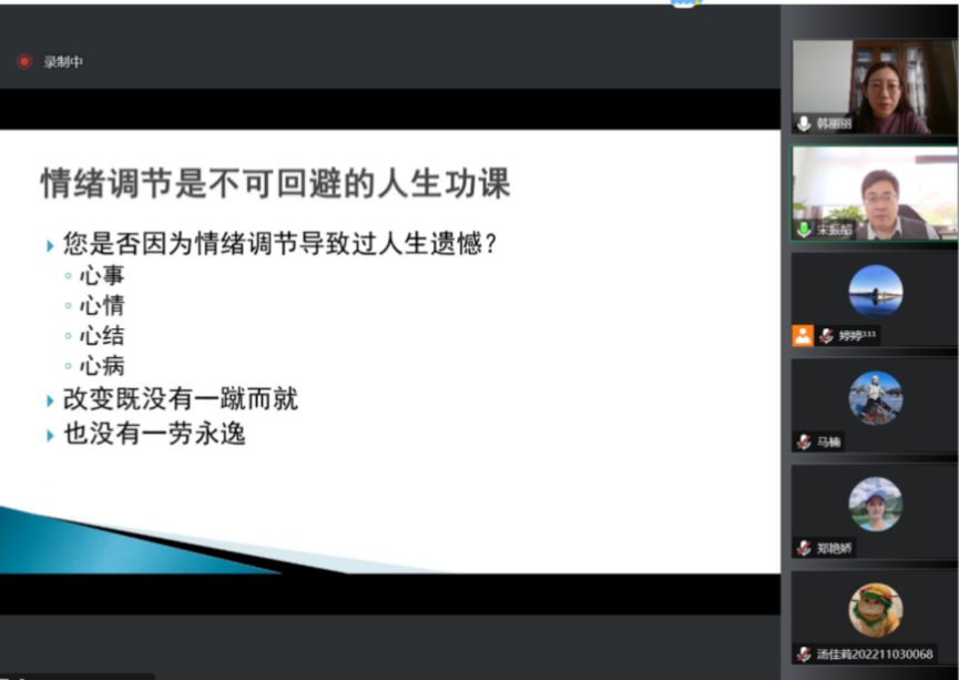 On November 4, 2022, BNUBS invited Song Zhenshao, the executive deputy director of Mental Health Education and Counseling Center, Associate researcher, to give a lecture on "Emotion Management from the perspective of Chinese Culture" and mental health education for freshmen. The online lecture was attended by more than 200 administrative teachers, homeroom teachers, as well as freshmen of the class of 2022. The lecture was hosted by Han Lili, Associate Secretary of the Party Committee of the School.