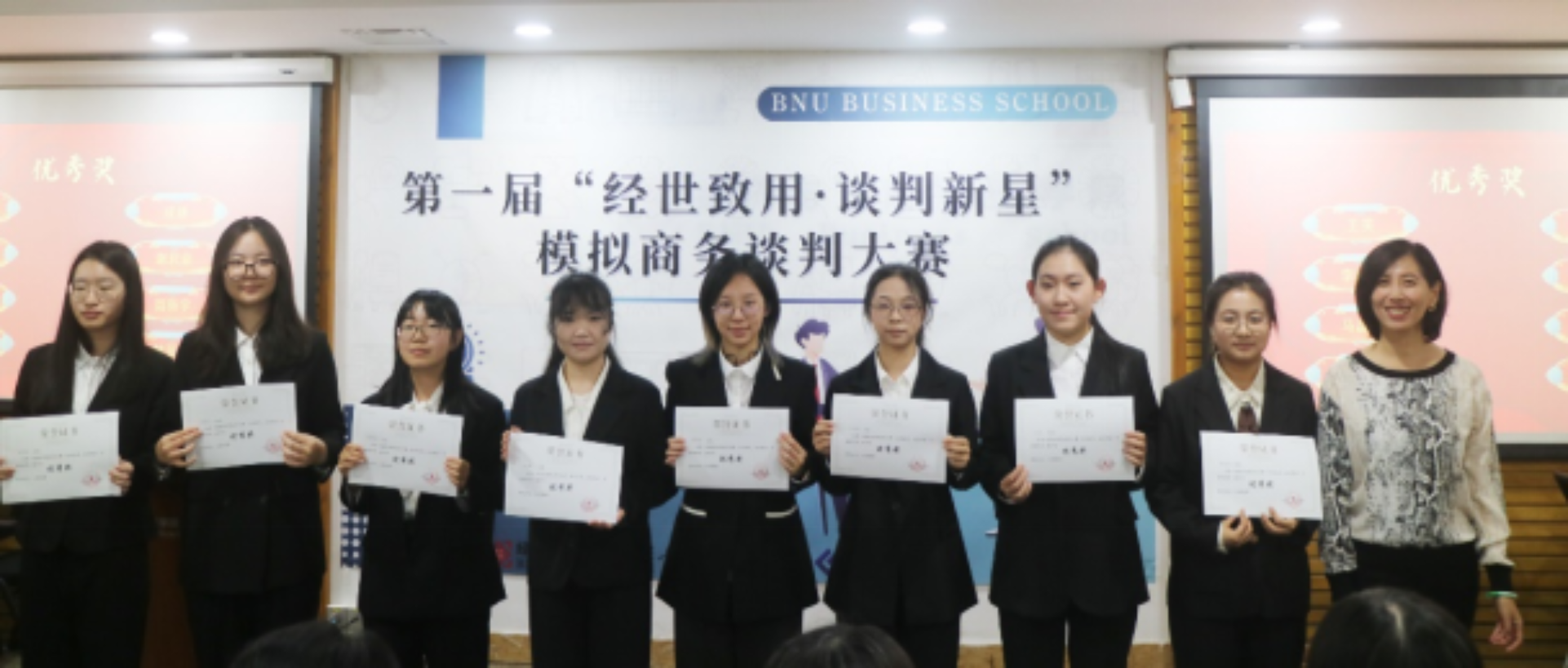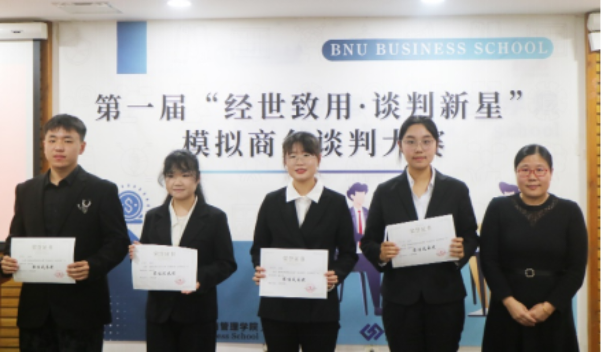 On November 30th, the final and award ceremony of the first "Business Promotion·New Negotiation Star" simulated business negotiation competition was successfully held in Conference Rooms 9406 and 9407 of the Jing Shi Building on the Haidian Campus of Beijing Normal University. This competition is hosted by BNUBS, organized by the School Youth League Committee and Student Union, and is open to all undergraduate and graduate students. This competition is another important innovative content of the Management Culture Festival, with extraordinary significance. It focuses on improving students' comprehensive quality and business negotiation skills. Through practical exercise, it aims to promote the deep integration of theory and practice, broaden students' horizons, build communication platforms, and help cultivate top-notch innovative talents in the School, empowering students to grow in all aspects.
