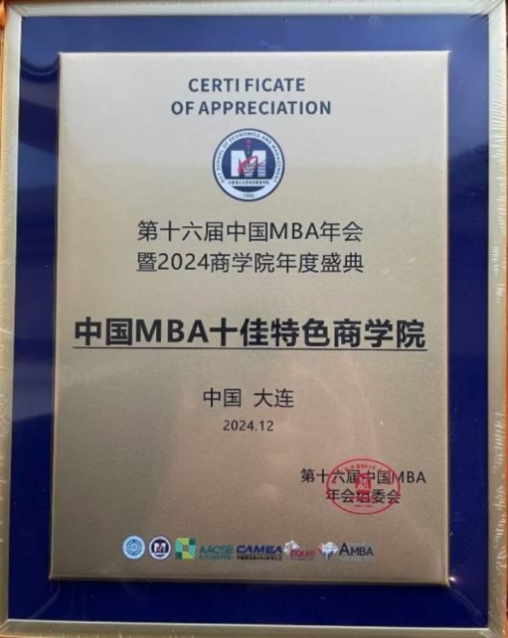 The 16th China MBA Annual Conference and 2024 Business School Annual Ceremony was awarded the title of "Top 10 Featured Business Schools for MBA in China".
