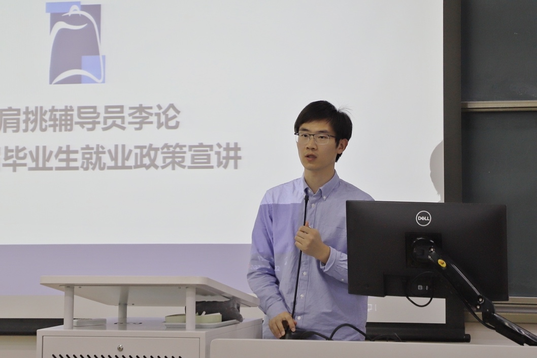 After that, Mr. Li introduced relevant employment policies to the students from three aspects. The first is the talent introduction policy of some cities in China and the main policy projects, including the conditions and policies for settling in first-tier cities such as Beijing, Shanghai, Guangzhou and Shenzhen and new first-tier cities such as Chengdu, Hangzhou and Xi 'an. There are also other policy projects related to graduates, such as community-level posts in education, agriculture, health care and poverty relief, special post teachers, volunteer service plan for the West, college students' enlistment, internship programs in international organizations, scientific research administration assistance, and research guarantee. The second is a detailed introduction to the common employment problems of graduates, such as employment preparation, signing of tripartite agreement, transfer of household files, reassignment procedures. The third is to introduce the operation guide and precautions for the students to fill in the employment dispatch system.