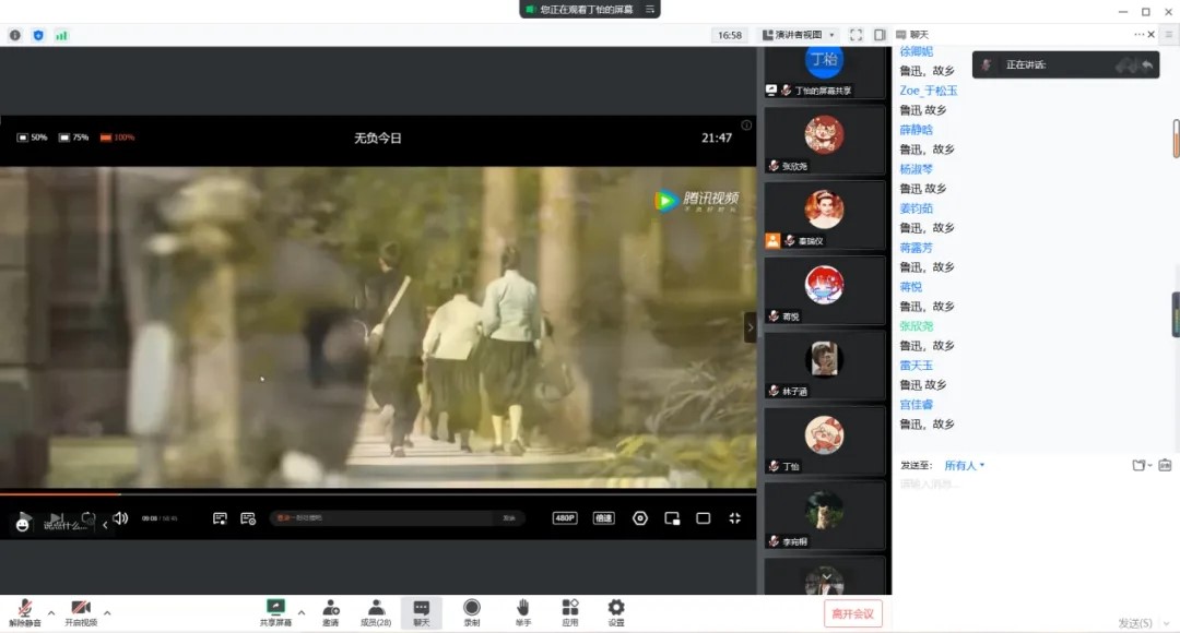之后,由团务委员林子涵同学为大家屏幕共享北师大120周年纪念片《无负今日》,团支部同学进行了集体观影。在观影期间,林子涵同学针对电影内容提出了一些小问题,同学们都认真地观看了影片,并积极地给出了自己的答案。