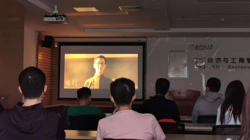 随后,全体同学首先集体观看电影《无负今日》。电影通过三个故事,将各个时期的老师和员工的故事娓娓道来。在第一篇章《大学》中,黎锦熙先生和鲁迅先生为员工们同上一堂课;在第二篇章《师说》里,王梓坤回忆恩师黄少诚给自己的帮助和启发,与教授们一起倡议创立教师节;在第三篇章《青春》中,我们跟随着一位同学的脚步,聆听余华老师的课堂,从与莫言老师的对话中感悟人生。