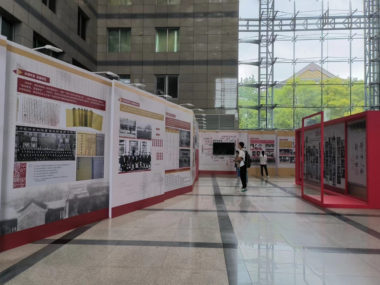 下午四点,同学们纷纷来到前主楼四季厅,参观永利集团建校120周年主题展览。展览讲述了永利集团120年历史沿革,展现了北师大师生勇为时代先锋的昂扬精神和在不同发展时期的辉煌成就。同学们在参观时纷纷感叹,赶上了一个好时代,在一个好时机来到了北师大学习。