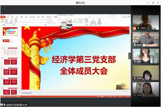 为加强组织建设,强化理论学习,yl88858永利集团经济学第三党支部于2021年3月9日召开第一次线上支部成员大会暨第一次党支部组织生活会。会议由支部书记袁胜轩同志主持,参会人员包括支部全部正式党员、预备党员、发展对象和入党积极分子。