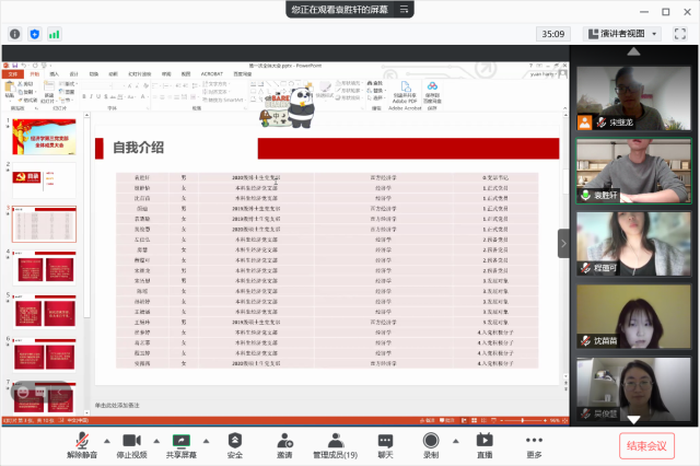 本次会议分为三个部分,分别是支部情况介绍、成员自我介绍、共同学习讨论及支部工作安排。