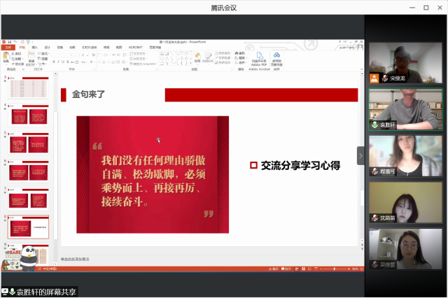 最后,袁胜轩同志介绍支部近期工作安排,明确支部近期的重要任务是完成主题为“百年辉煌”纪念中国共产党成立100周年系统活动推送,并就该推送的制作进行了任务分配。