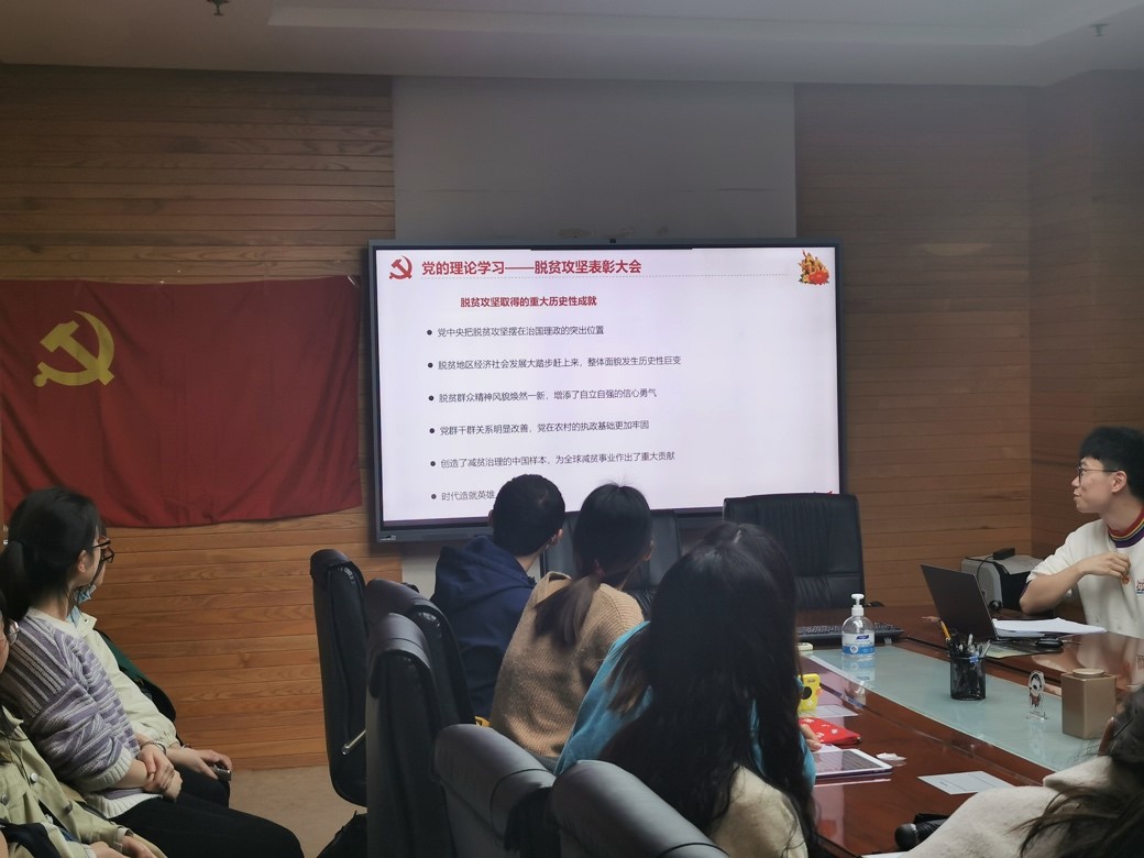 之后,支部全体成员一起学习了习近平总书记全国脱贫攻坚总结表彰大会上的重要讲话,着重了解了新时代脱贫攻坚历程和脱贫攻坚取得的重大历史性成就。“征途漫漫,惟有奋斗”,脱贫攻坚精神是中国共产党性质宗旨、中国人民意志品质、中华民族精神的生动写照,是爱国主义、集体主义、社会主义思想的集中体现,是中国精神、中国价值、中国力量的充分彰显,传承了伟大民族精神和时代精神。