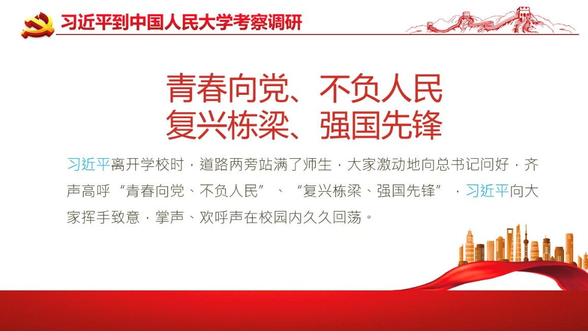 通过此次集体学习,两个支部的成员对习近平总书记考察中国人民大学时的讲话精神有了更全面的理解,同时也深刻意识到疫情防控之下党员发挥带头作用的重要性。面对疫情,我们更应坚定信心、同舟共济、团结一心,共同守护校园安全!