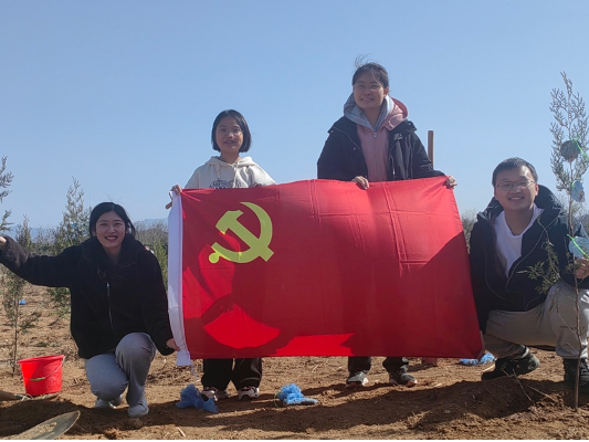3月12日,张心雷、钟艺媛、李宇涵和亓婧宇同学前往青龙峡植树基地进行植树活动,践行“孟春之月,盛德在木“的传统美德,种下春日的新苗。同学们一起努力,植下了两颗小树苗,一颗叫小正,一颗叫小歪。在植树的过程中,同志们感受到了雷锋同志为他人奉献的光荣使命,更加深刻地体悟到作为一名党员的责任与荣光。