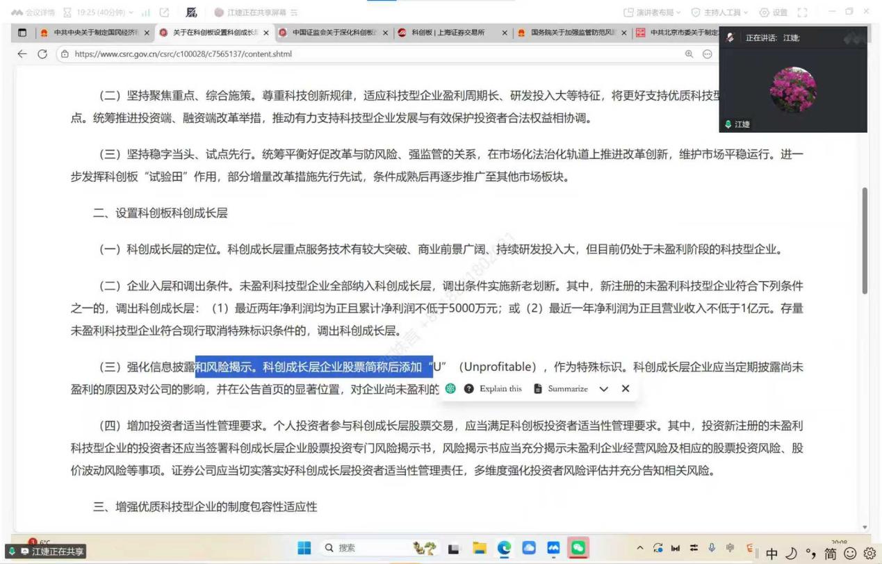 江婕老师以“服务国家战略赋能金融改革——从科创板制度创新看资本市场高质量发展”为主题,结合金融领域改革实践与行业发展趋势,讲授专题党课。她围绕《关于在科创板设置科创成长层增强制度包容性适应性的意见》核心要义,系统解读了“十五五”规划建议中关于资本市场改革的重要论述,阐明国家以制度创新为核心,持续提高资本市场对科技创新企业的包容性、对实体经济发展的适应性,进一步健全投资与融资相协调、融资与服务相匹配的资本市场功能体系,让资本市场更好地成为服务科技创新、支持产业升级的“助推器”的政策导向。