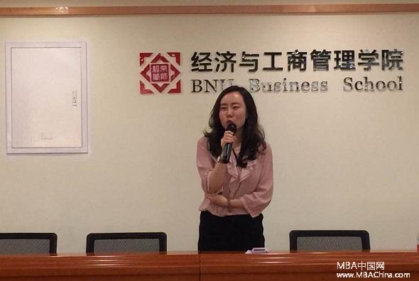Pic 1: Du Jing, the director assistant and the marketing director of BNU MBA Education Center, hosting the Sharing
