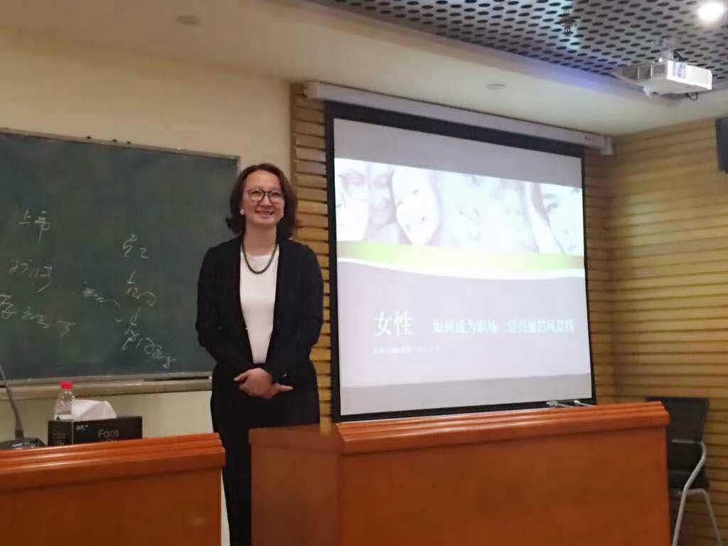 In thebeginning of her speech, Ms. Liushared with students the magic weapon for career women from three perspectives: workplace environment for women, how to win in the world of men and how to reveal female advantages in the workplace. And then Ms. Liu explained in detail how to perform better in workplace for women from six aspects, such asincreasing comprehensive ability, understanding the boss, focusing on working attitude, cultivating team spirit, keeping fit and never stop learning. She suggested that women should always maintain the curiosity for new things and the attitude to learning more.