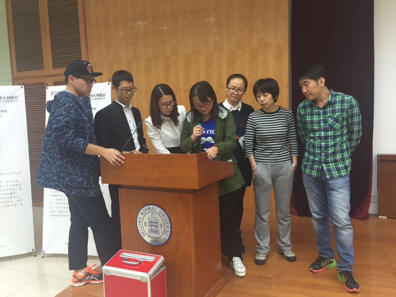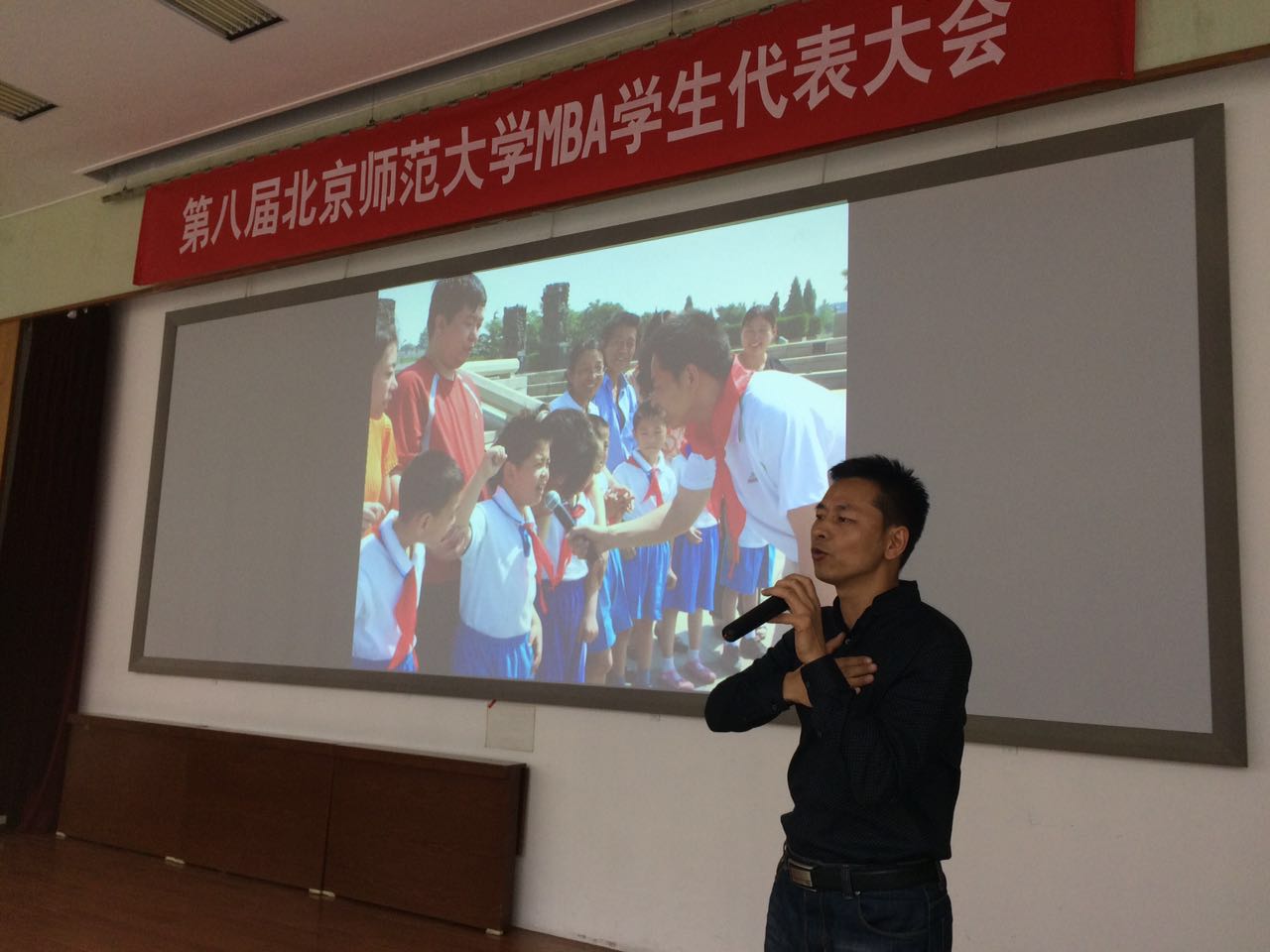 After the presentation of all candidates, Zhu Zhenfeng from 2015 Full-time Class was elected as the president of 8th BNU MBA Association by a secret ballot in all student representatives and received the association flag from the hand of the former president.