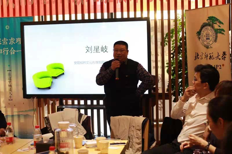 Advisor Liu Xingqifrom the Anyang Hexu Culture Media Co.,Ltdis our senior fellow apprentice. He has pursued his master degree and doctoral degree in Beijing Normal University (BNU). His company specializes in project development of endowment industry as well as the exhibition and auction of calligraphy and painting. Heshared his struggles and asked us to be practical and seize the opportunity.