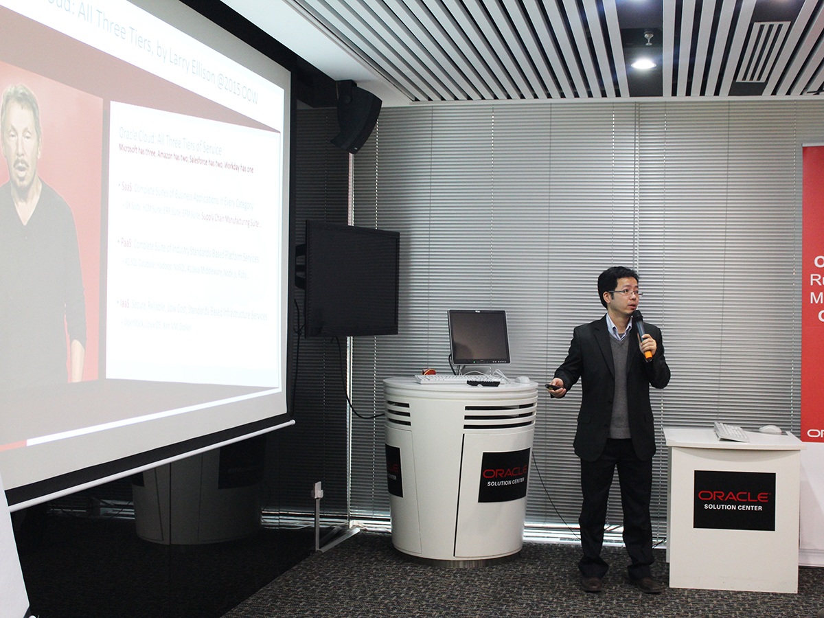 Yang Yiguang, the senior consultant manager of Oracle, introduced that Oracle China has been developing at an amazing speed over the past five years and such achievements are inseparable from Oracle’s acquisition strategy. Oracle today is no longer just a database software company, its cloud service and integrated system have made it a comprehensive enterprise-level IT service provider. As for cloud computing, Oracle Cloud can provide all-around three-layer services includingSaaS, PaaS and IaaS. From hardware and software platform to cloud computing, Oracle has showed its core strengths, which are comprehensiveness, openness, and integration.