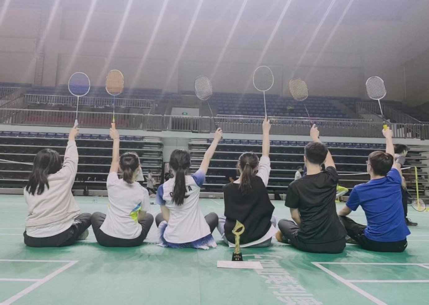 曹欣悦不仅擅长活动策划,更愿意亲身参与其中。在研一上学期各公司间举办的“寰羽杯”团体羽毛球决赛上,她和搭档在落后四个赛点的情况下,实现了逆风翻盘,最终追分至24:22赢得了胜利。曹欣悦回忆:最后一场比赛是与心理学部的混双比赛,当比分落在16:20时,场上的观众都认为胜负已定,我和搭档的压力也来到了顶峰。我们握住了对方的手,眼睛盯着彼此,互相低声说了句:“稳住,加油”。第一个赛点对方未能结束比赛,我方收获了第17分。紧接着,我方又接连拿下三个赛点追平了比分。就这样,比分从21:20、21:21、22:21、22:22、23:22…直到24:22!我们赢了!我和搭档激动地拥抱在了一起,院队里其他队员也欢呼着跑上来和我们拥抱。