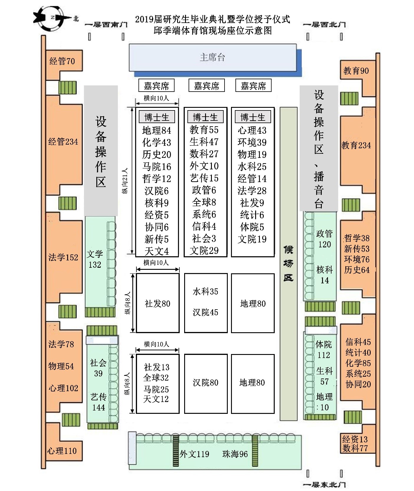授予学位顺序为:硕士毕业生(教育—哲学—新传—环境—历史—信科—统计—化学—系统—协同—经资—数科—经管—法学—物理—心理—文学—社会—艺传—外文—珠海—生科—体育—核科—政管—地理—汉院—水科—社发—全球—马院—天文)—博士毕业生。