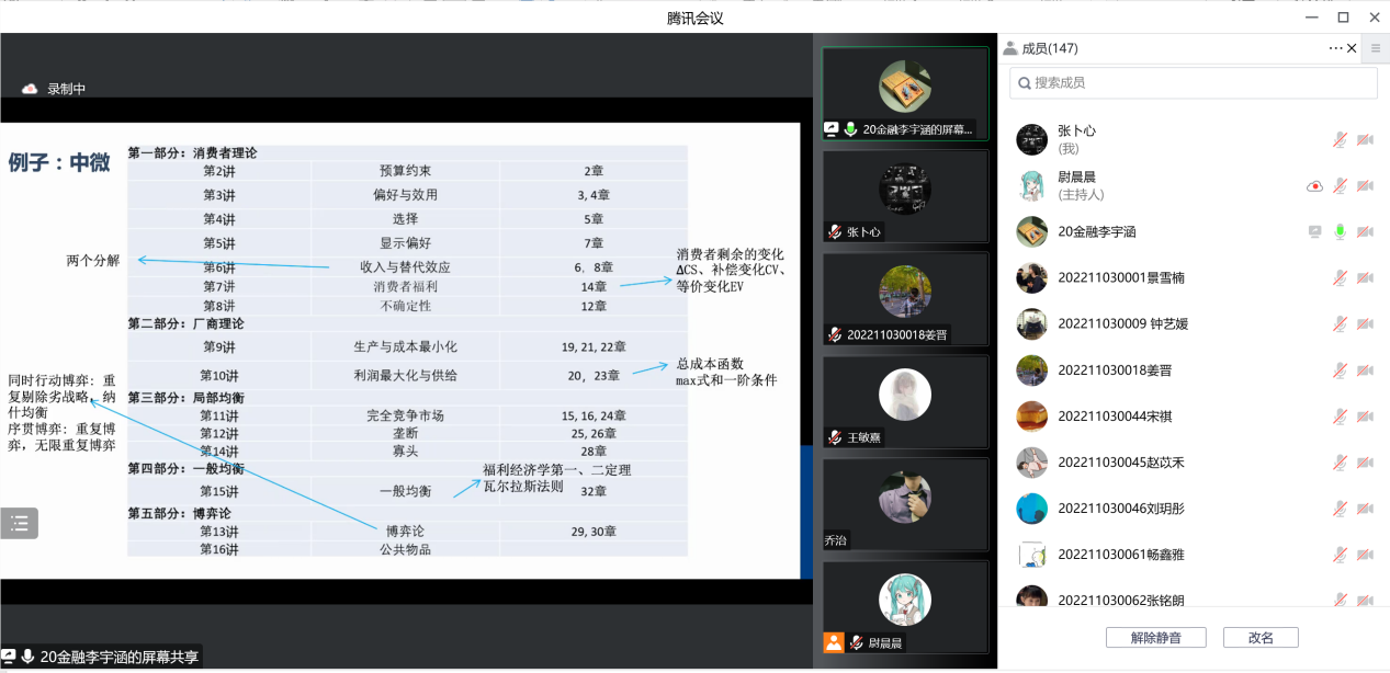 第一组的嘉宾是来自2020级金融学专业的李宇涵同学、2020级经济学专业的李文轩同学和来自2019级会计学专业的罗晰月同学,他们分享的是关于学业方面的内容。