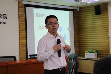 接下来,王汉生教授给作了题为“点击率预测与RTB广告投放”的报告。王教授首先介绍了狗熊会的创始与运营情况,即不同领域的学者在一起研究;讲座开始介绍了什么是RTB和点击预测模型,如何应用模型指导定价;讲述了实时广告竞拍过程,说明广告投放做不到精准营销,所以需要有分析的需求;介绍了广告竞拍的规则,即价高者得,且收费标准各不相同;游戏是点击率之王,但有时目标人群不符;最后又介绍了狗熊会的理念:国家产业的发展可以带动整体理论学科的发展,即产业激发或带动学科发展。学科伴随产业的发展。
