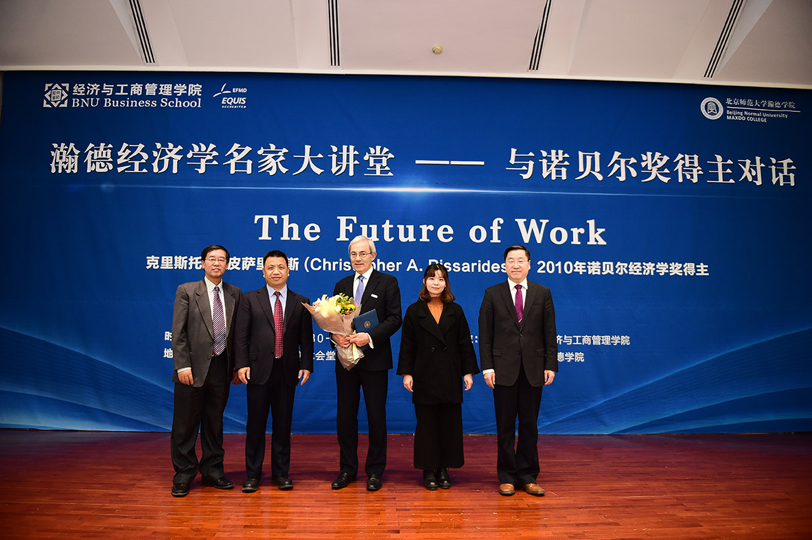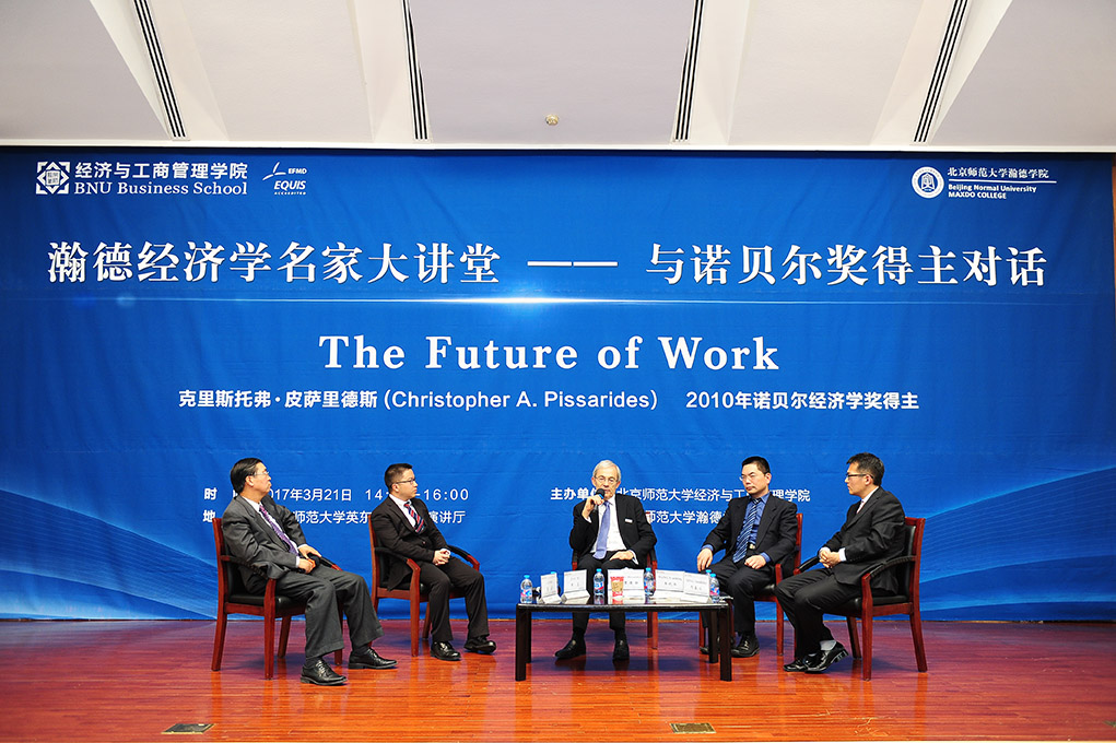 2017年3月21日下午,瀚德经济学名家大讲堂暨第55期京师经管·名家讲坛在永利集团英东学术会堂演讲厅顺利举行。2010年荣获诺贝尔经济学奖得主、伦敦政治经济公司王室讲席教授克里斯托弗•皮萨里德斯(Christopher A. Pissarides)担任主讲嘉宾,yl88858永利集团经理赖德胜教授担任主持人。