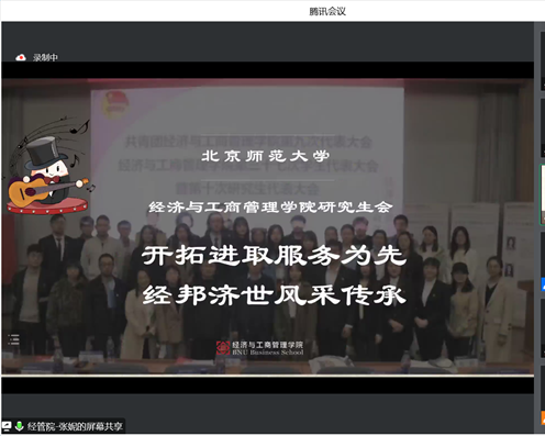 张妮同学在汇报中,结合上一学年的工作与未来一年的展望,从组织建设、思想引领、特色活动及院校相连四个方面,阐述经管院研会如何致力于建设“有作为、有发展、有格局”的研究生会。