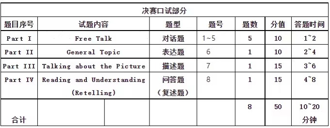 2) 决赛定于2024年5月19日(星期日)上午9:00—11:00进行(具体地点另行通知)。赛题由全国竞赛组委会统一命制,北京赛区只参加笔试,不参加口试,满分为150分。参加决赛的人数按报名人数的6‰的比例,成绩由高到低择优选拔。