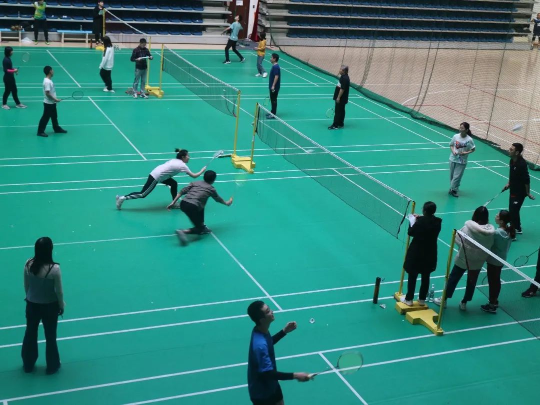 很快,比赛来到了四强赛,分别由AB与CD四组的一二名交换对决。队友们眼神间的默契,选手们精湛的技术动作,无不让人惊叹。第二场地的选手扣球的动作在空中止住,以完美的控制肢体力度打出一个短球,让对手猝不及防;而第四赛场的女选手以一手精湛的停球技巧,获得全场的欢呼;宋涛老师与陈浩老师的强强联手,更是展现了极高的羽毛球技术。
