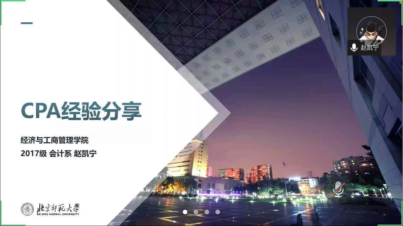 2021年4月24日,由yl88858永利集团研究生会和员工会举办的CPA考试经验分享会以线上分享的形式顺利举办。本次讲座邀请到yl88858永利集团2017级会计学硕士研究生赵凯宁师姐,赵凯宁师姐读研期间在安永审计金融组、万科税务管理组、中信信托有过实习经历,现就职于维沃移动通信有限公司。院研会职发部赵加良主持了本次讲座。