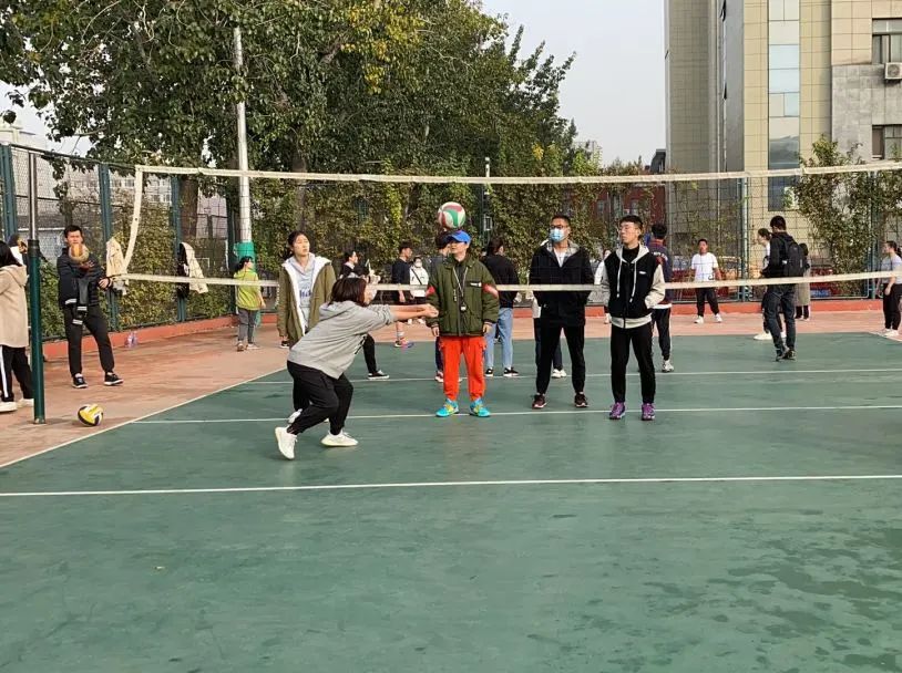 相较于技术,这次的排球比赛更考验团队协作:左右列队,互相掂球。一声哨响,手起球跃,在空中划过一段标准的抛物线后被对面选手正正掂起,继而又是一段富有几何美感的飞跃。左右往返间,有排球轨迹偏移时队员绝地救球的惊呼,有接球失误时队友拍手鼓励的温暖。结果虽有遗憾与不甘,但这场比赛我们留下了坚毅的足迹与挺直的背影!
