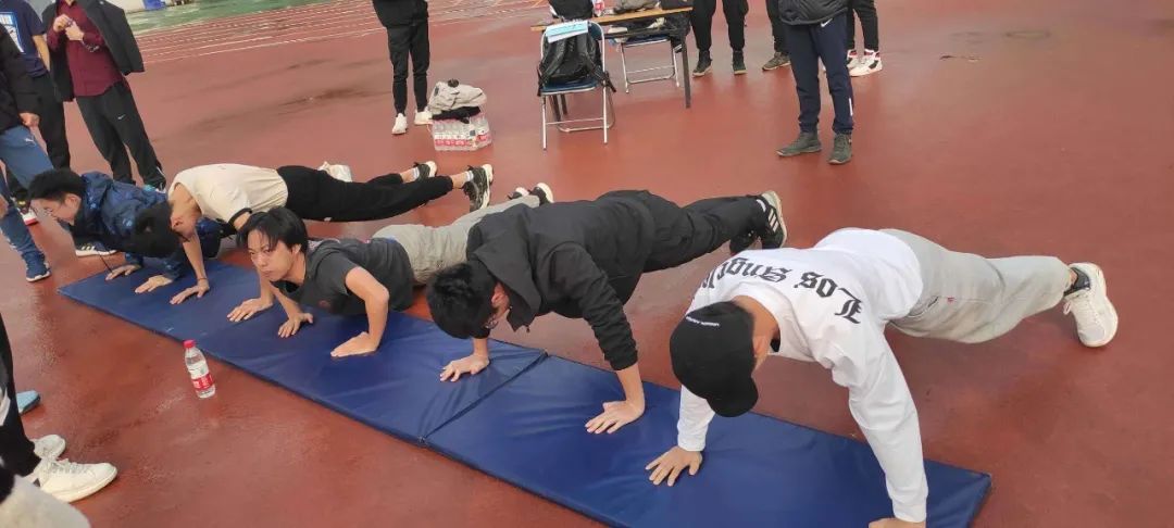 预备时,男生们两手撑地,两臂伸直,前脚掌着地,身体绷得笔直。一声令下,他们迅速屈肘,上半身平稳下落,几乎要与地面贴平,而后手部肌肉又猛然发力,带动身体抬起。一次次撑起,他们的手臂上青筋微显,额头上冒出薄汗。一列看去,此起彼伏的身影像是一座座沉默的山峦。我方猛将金东旭更是创造了一分钟将近六十个俯卧撑的奇迹。正是他们的咬牙拼搏、不懈努力,让经管队取得了第一名的好成绩!