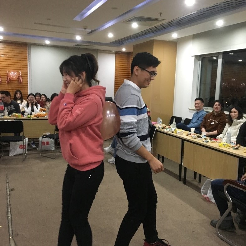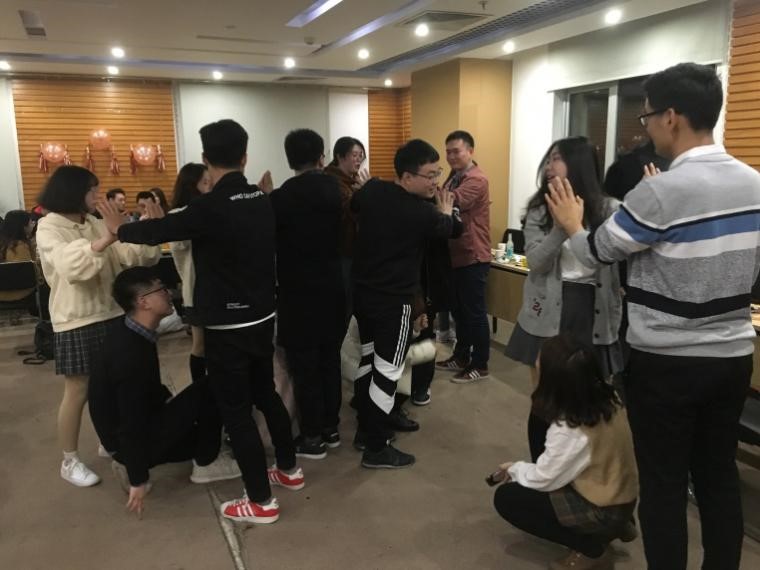 工作人员为联谊活动设计了丰富多彩的游戏,第一个游戏是“海盗船长”,海盗船长按顺序依次报出,被指到“长”的人做观望的姿势,同时旁边两人往双侧做划船的动作,嘴里需要发出“嘿咻嘿咻”的声音,第一个游戏让同学们慢慢放下了局促和不安。接下来是松鼠房子游戏,随着三种口令猎人来了、失火了、地震了的不断变化,男生和女生也要不断随机组合。没有房子的松鼠要接受相应的处罚,“真心话”和“大冒险”二选一,男同学们通过唱情歌等方式表达自己的真诚,赢得了阵阵欢呼声。精心设计的中场环节,王远东和黄钰清同学为大家带来了一首《屋顶》,深情的演唱,让空气里都弥漫着甜蜜的味道。泡泡糖游戏,主持人传达数目加身体部位信息,男生女生通过自愿合作完成相应的数目,在此期间,彼此间增加了熟悉感。最后两个游戏是“猜数字”和“你划我猜”,考验参与者的默契程度,陌生感和生疏感消失殆尽。
