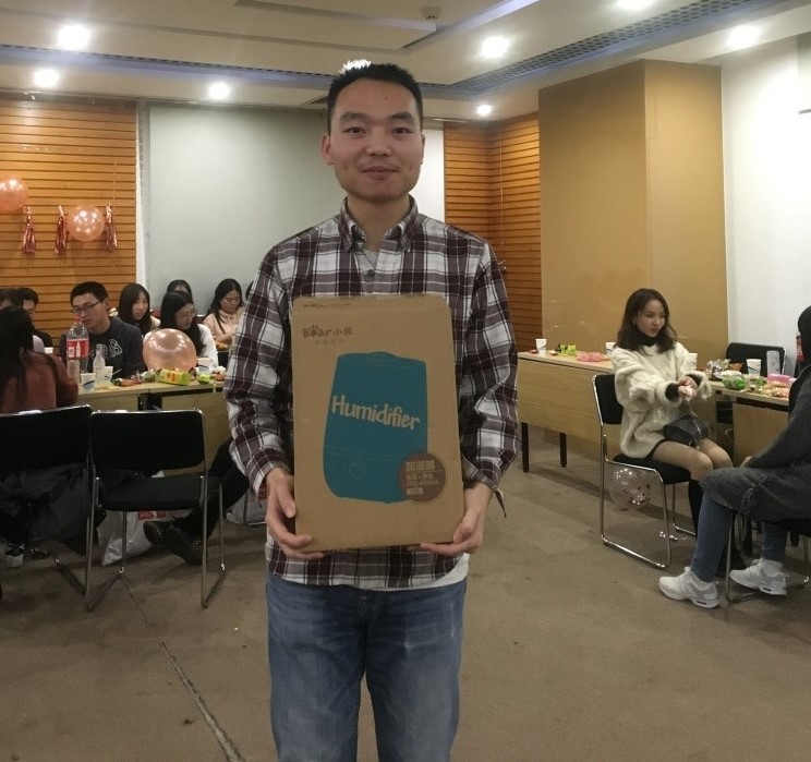 联谊的最后一个环节是抽取当晚最大奖,一等奖加湿器被幸运儿成功抱走。