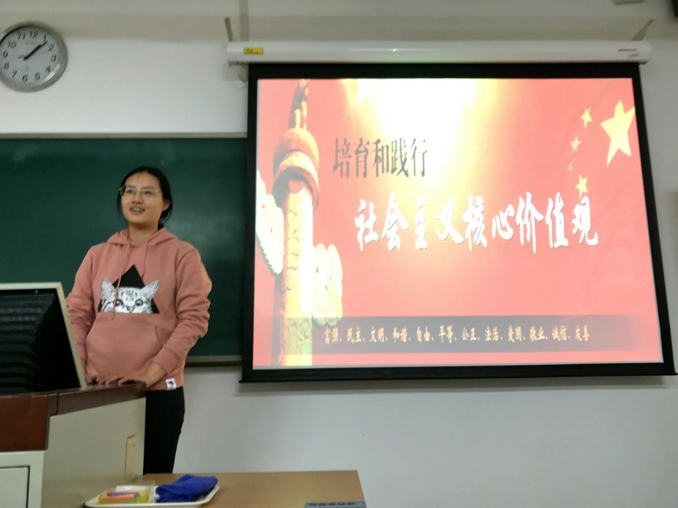 2017级工商管理班围绕“核心价值观”这一关键词,从核心价值观的内涵要义、身边发生的能够体现核心价值观的小事、如何践行核心价值观等三个方面展开,通过提问发言,传播正能量。