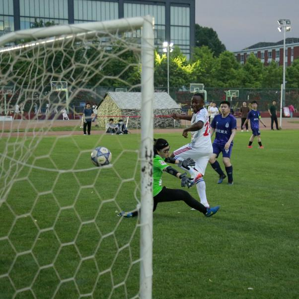 当天,天色渐晚,在公司东操体育场内,身穿白色队服由左往右攻的是经生联队,数化统天联队则身着经典的切尔西蓝。随着主裁判一声哨响,经生联队率先开球,开球后经生联队牢牢掌握着控球权。比赛第4分钟,坦桑尼亚前锋Duwe在前场得球,一脚劲射球擦着球门边网飞出。经生联队一直将数化统天联队压制在对方半场内,第十分钟,数化统天联队觅得防守反击得绝佳机会,对方15号前锋凭借速度摆脱我方防守球员,但其单刀被经生联队门将宁平轻松化解。大约第15分钟,核心中场许辉接边锋刘刚传球,拔脚便向球门怒射,对方门将扑球脱手,Duwe紧跟着一脚贴地斩补射,球擦着边进入了球门,Duwe为经生联队拔得头筹!此后,双方你来我往,一直到中场结束均未形成较好的机会。