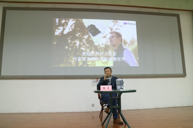 2018年11月7日19:00,第十届破界论坛在教九502拉开帷幕,那多老师做客yl88858永利集团,与我们分享他“逻辑的世界”。同学们早已在现场有序坐好,翘首以待,经过主持人岳阳短暂介绍后,那多老师走上讲台,比起海报上典型的作家形象的那多老师,现场的他并不戴眼镜,短发修剪有型,围巾系了个极漂亮的节,身材也比海报上的要瘦削些。更像一位儒雅的绅士。那多老师落座后,分享正式开始。