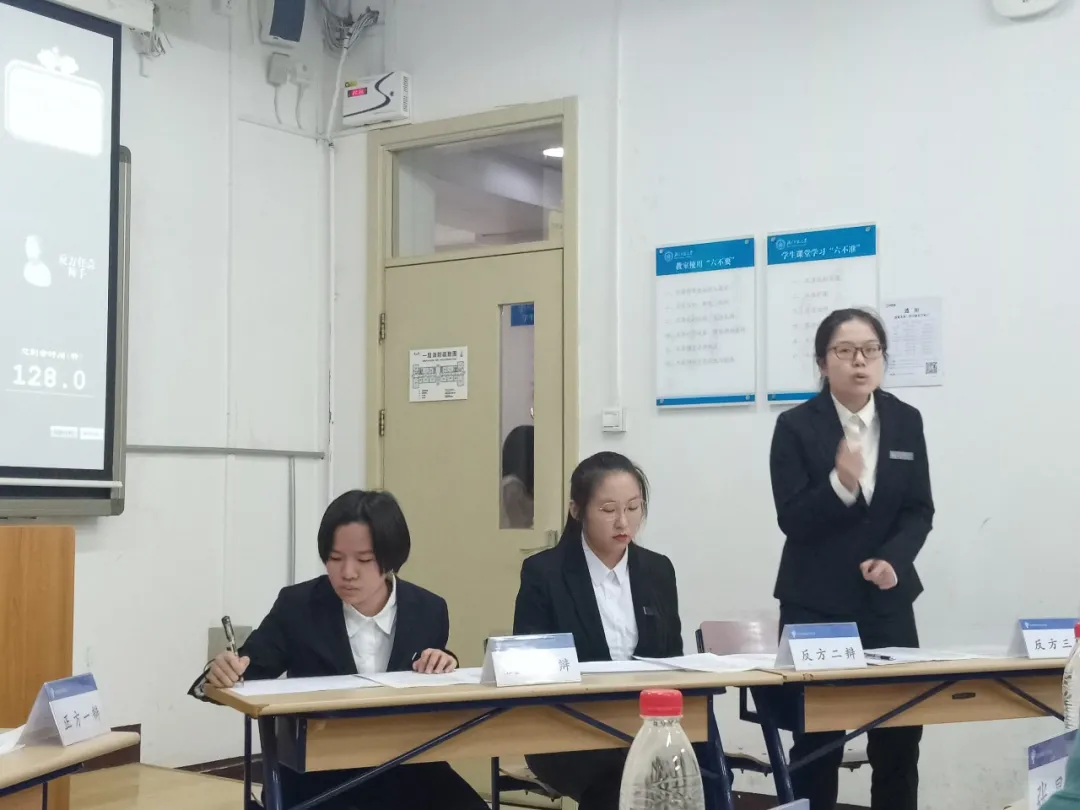 正方一辩开篇立论,阐明大数据为人们带来提高效率,带来便利,进而有更多的时间去做想做的事情,这是一种自由。反方二辩则结合实际,认为提高效率只会加大老板对员工的压榨力度。接着,反方一辩持相反的观点立论,认为大数据时代,无孔不入的数据渗透,表面带来便利,实则是对年轻人的限制与束缚,一时之间,剑拔弩张,唇枪舌剑,你来我往。